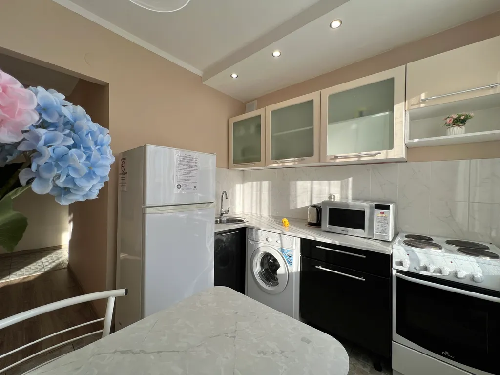 Оборудованная кухня (холодильник, варочная панель, микроволновая печь, чайник)