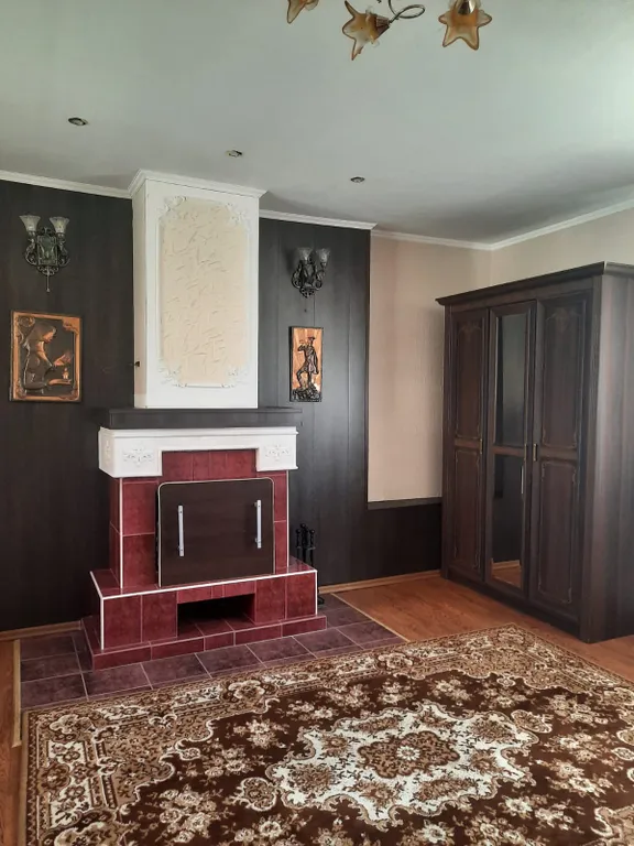 - В спальне расположен раздвижной диван и двух спальная кровать, камин, шкаф