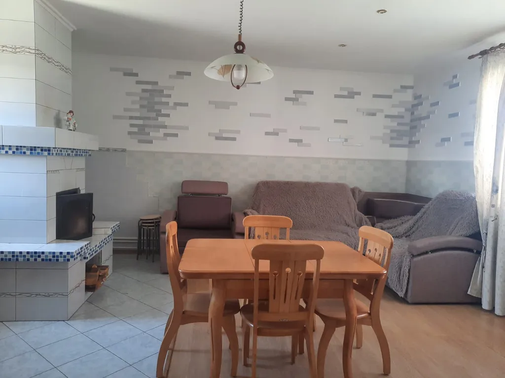 - Во второй комнате кухонная зона, раздвижной диван, кресло-кровать, печь.