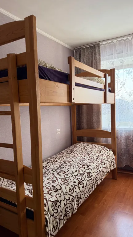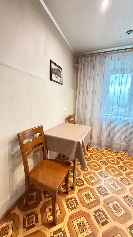 Расположена в уютном районе города, с окнами в тихий зелёный двор с детской площадкой.