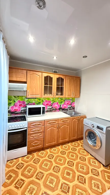 телевизором, Wi-fi, холодильником, электроплитой, микроволновкой, чайником, необходимой посудой, стиральной машинкой.