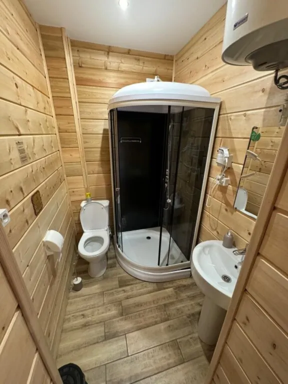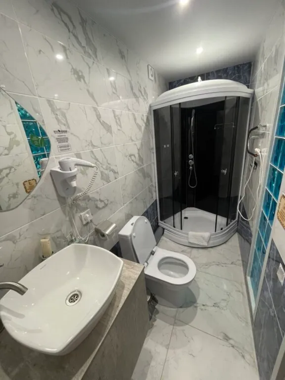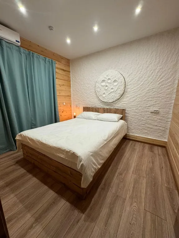 Спальня отдельно с кроватью на 1, 4 м, в номере- сан узел, душ, туалет, фен, одноразовые наборы, тапочки, халат по запросу, полотенца.