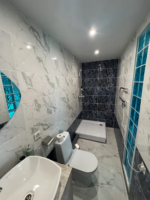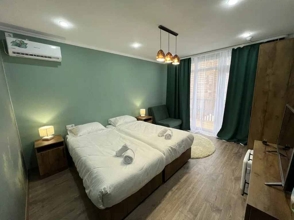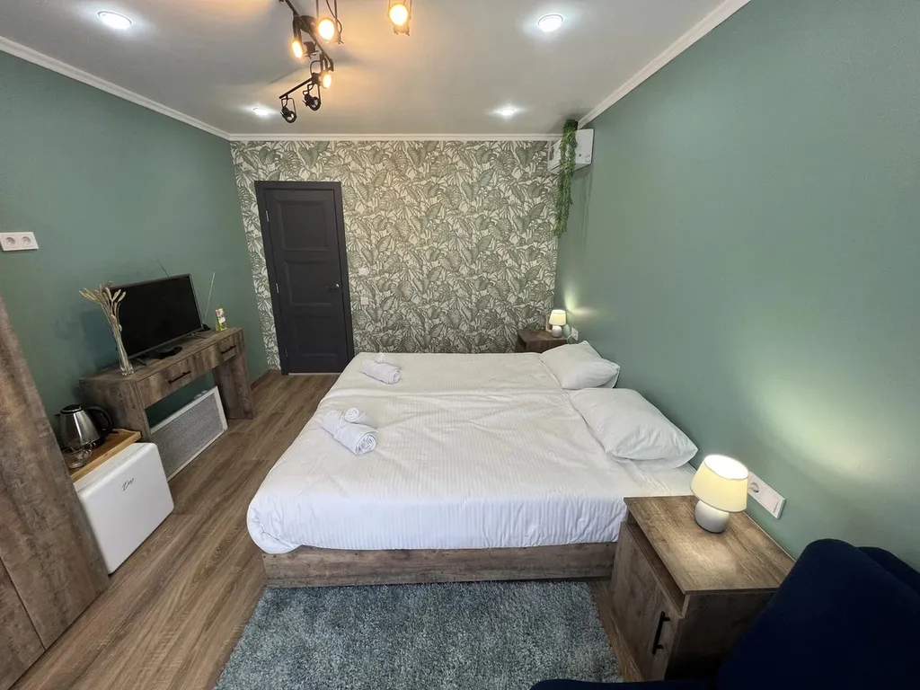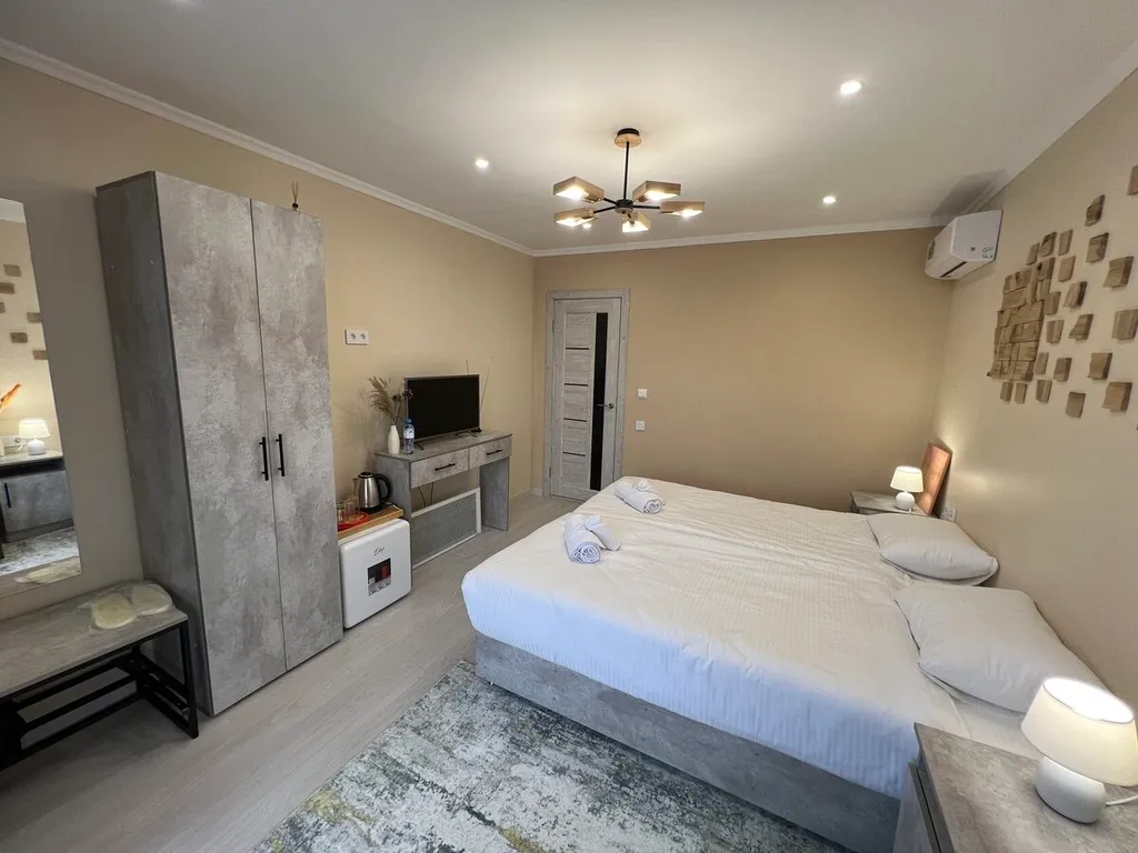 Номер оснащен теплыми полами, ТВ, кондиционером, сейф, санузел душ, туалет, раковина.