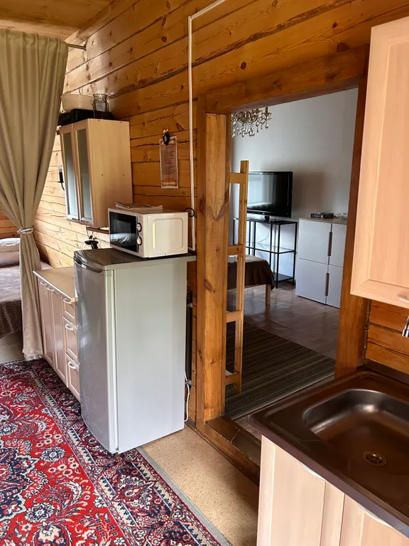 Гостевой деревянный дом. Благоустроенный 4-х местный номер 45 КВ.м.(две комнаты) и 3-х местный номер 25 КВ.м. (студия)