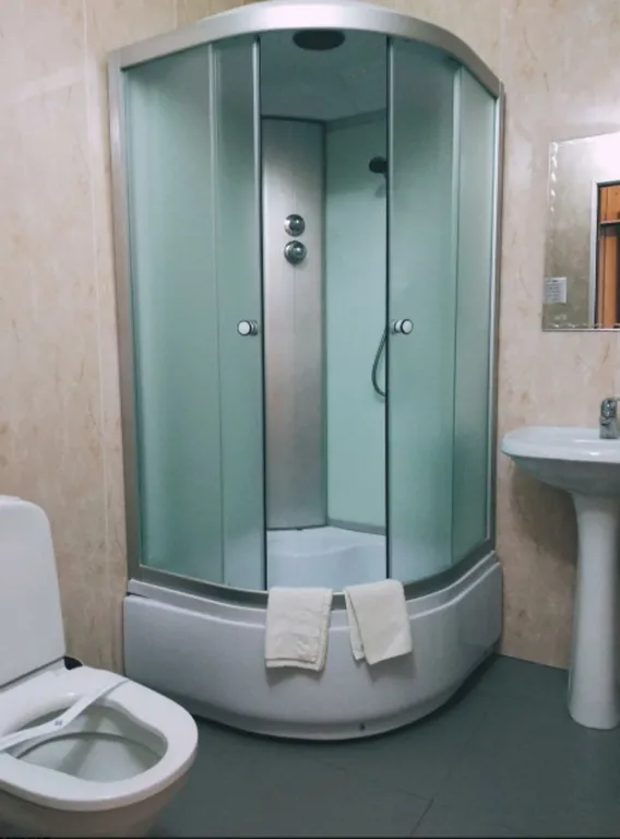 Домик в 2 этажа! На первом этаже расположена отдельная комната: с удобным диваном, который раскладывается размером 180*200, комод, тумбочка. Душевая комната с санузлом адаптировано для МГН. Гостиная с прихожей, столик с табуретками, шкаф.