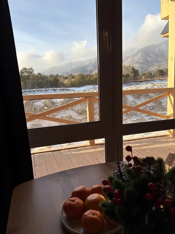 Панорамные виды: из больших окон открывается потрясающий вид на реку и горы.