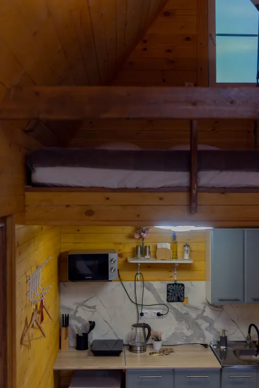 Оснащение: микроволновая печь, кухонная посуда, пледы, удобные матрасы и постель, фен, диван с мягкими подушками, плита, чайник, телевизор, холодильник. Санузел также полный комплект, мангал, столы и стулья на террасу, обогреватель.